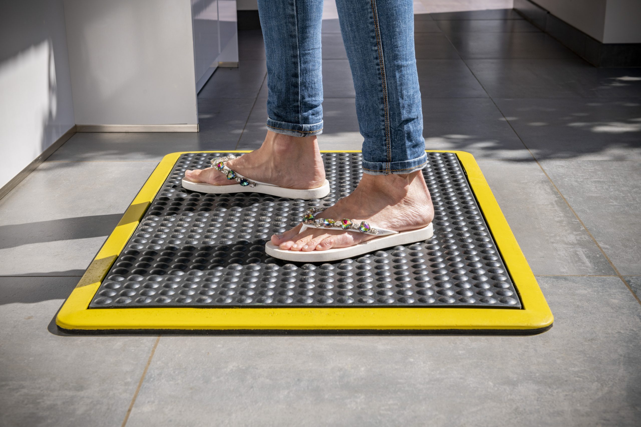 De rubber mat is veilig, geluiddempend en hygiënisch en is heel gemakkelijk te onderhouden
